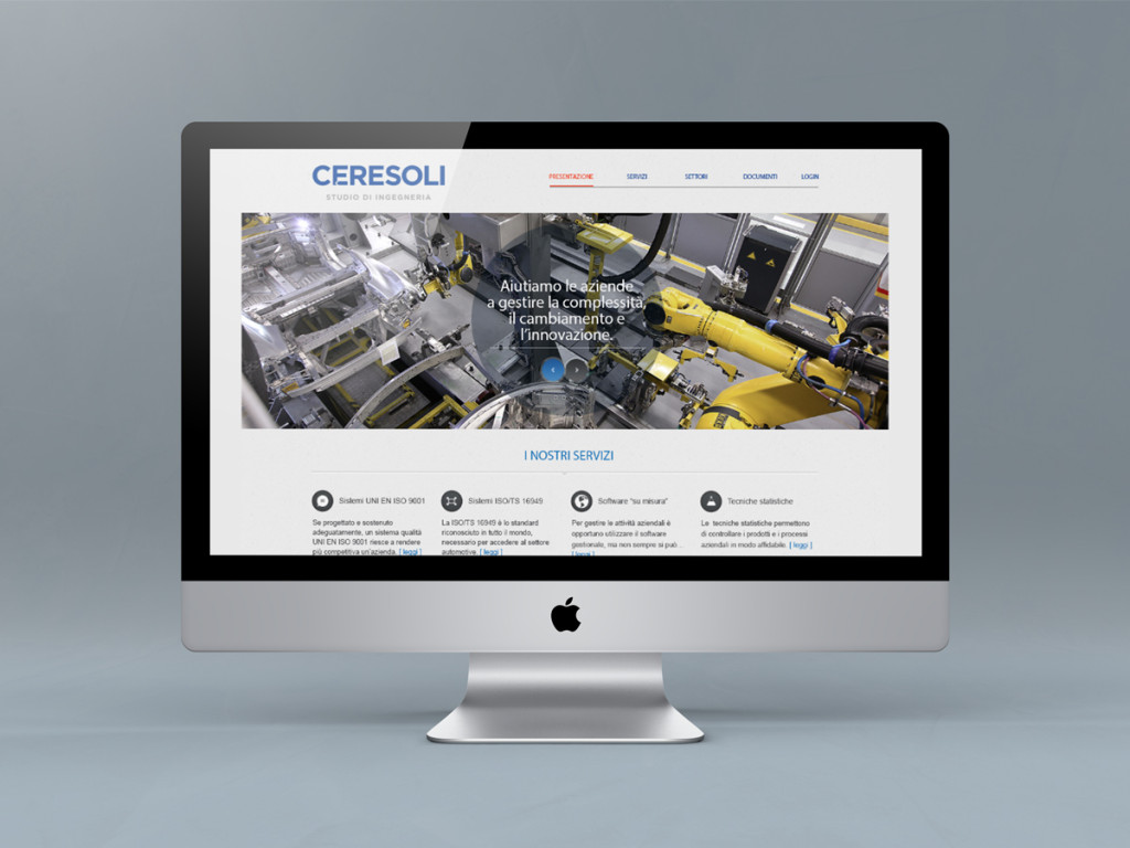 Website design for engineering studio Ceresoli. An organized new website to show services and company portfolio. Software: Adobe Photoshop©, Adobe Illustrator©,