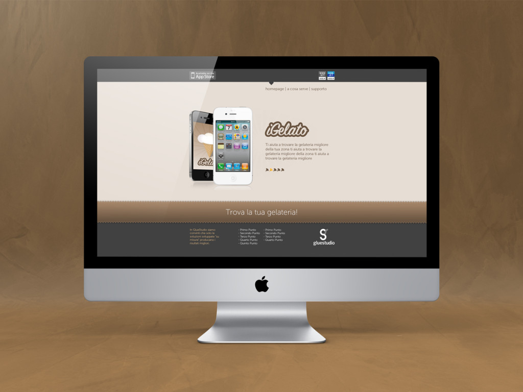 Website design for iGelato app by GlueStudio. Software: Adobe Photoshop©, Balsamiq Mockups©