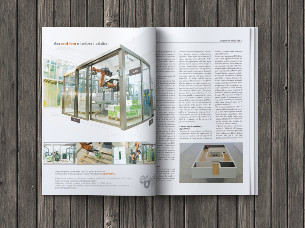 Realizzazione pubblicità per azienda nel settore della robotica applicata. Poster e impaginazione per magazine di settore. Software: Adobe Photoshop©, Adobe